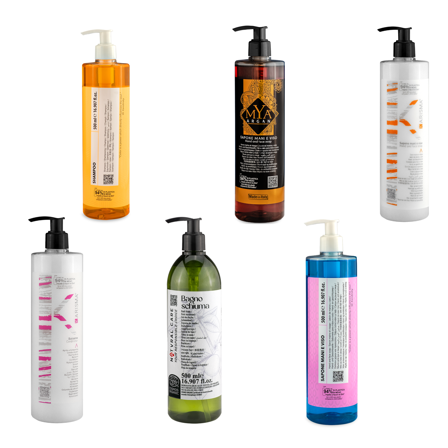 I nostri dispenser da bagno uniscono eleganza, praticità e sostenibilità. Realizzati con materiali resistenti e design moderno, offrono una soluzione igienica e professionale per shampoo, bagnoschiuma e saponi. Le ricariche permettono un risparmio significativo e riducono gli sprechi, garantendo formulazioni Made in Italy, dermatologicamente testate e con packaging riciclabile al 100%.